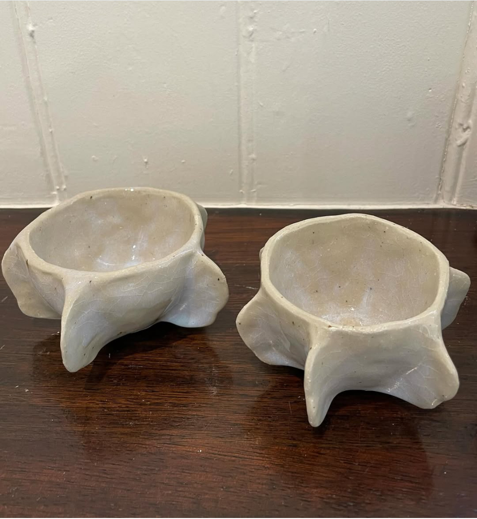 This body of work focuses on hand-built natural forms, textures, materials and firing techniques. This reflects my interest in ancient ceramic practices with ceramics at the heart of food, and spiritual and cultural offerings.